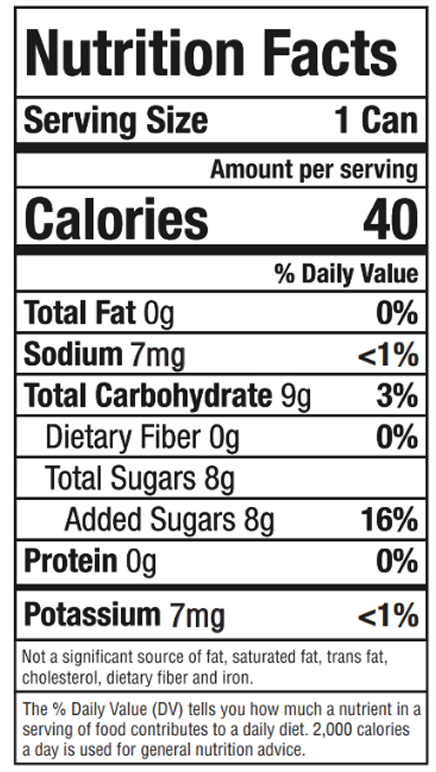 Carbonated water, sugar, Full Spectrum CBD (hemp extract), Natural Flavors, Citric Acid, Potassium Sorbate, Sodium Benzoate