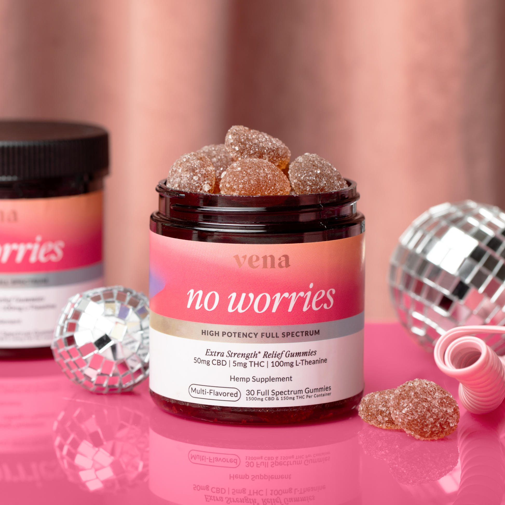 No Worries Relaxation Gummies are your go-to for turning down the stress and turning up the calm. Each gummy packs 50mg of CBD, 5mg of THC, and 100mg L-Theanine to help relax the body, quiet the mind, and bring balance back to your day. Whether you're navigating daily pressure or winding down after a long one, this high-potency formula offers natural, full-body relief you can truly feel.