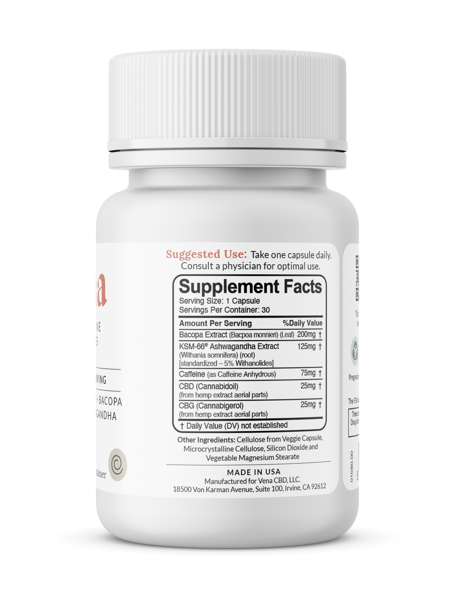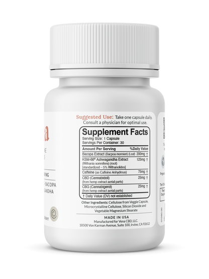Rise + Shine Capsules are your daily boost for calm energy and clear focus—without the crash. Each capsule combines 25mg of CBD with caffeine, CBG, Bacopa, and KSM-66 Ashwagandha to help support mental clarity, mood balance, and natural alertness. It’s your go-to for powering through the day with a centered mindset and steady energy.